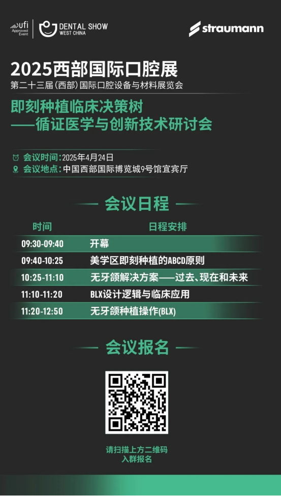 2025第⼆⼗三届(西部)国际⼝腔设备与材料展览会暨⼝腔医学学术会议将于4月24日-27日在中国西部国际博览城举办,士卓曼将携种植修复产品、数字化解决方案、正畸解决方案,生物材料参展,诚邀各位口腔行业同仁莅临参观指导。